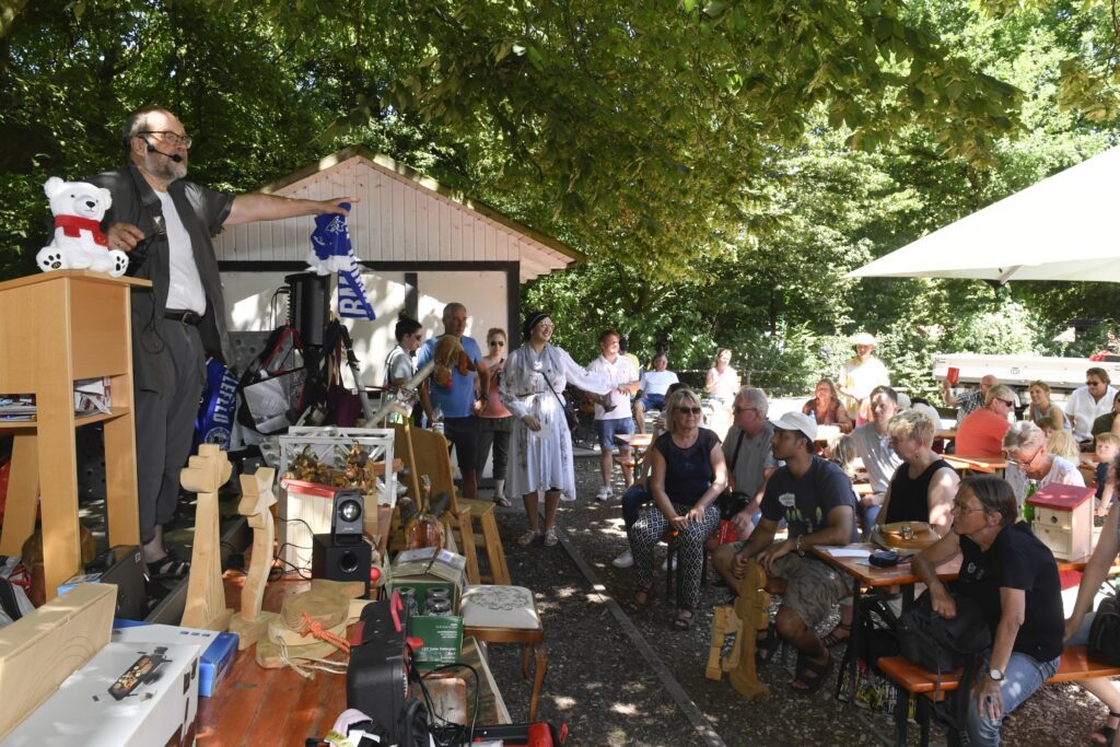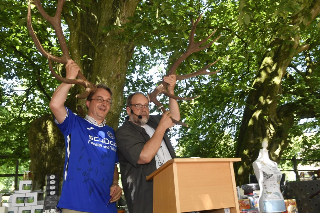 Die Auktion für den Tierpark Olderdissen war ein voller Erfolg. Fast drei Stunden hat der Auktionator, Christian Presch, unermüdlich, humorvoll und mit viel Engagement weit über 200 Auktionsgegenstände im Biergarten des Meierhofes Olderdissen unter den Hammer gebracht.
